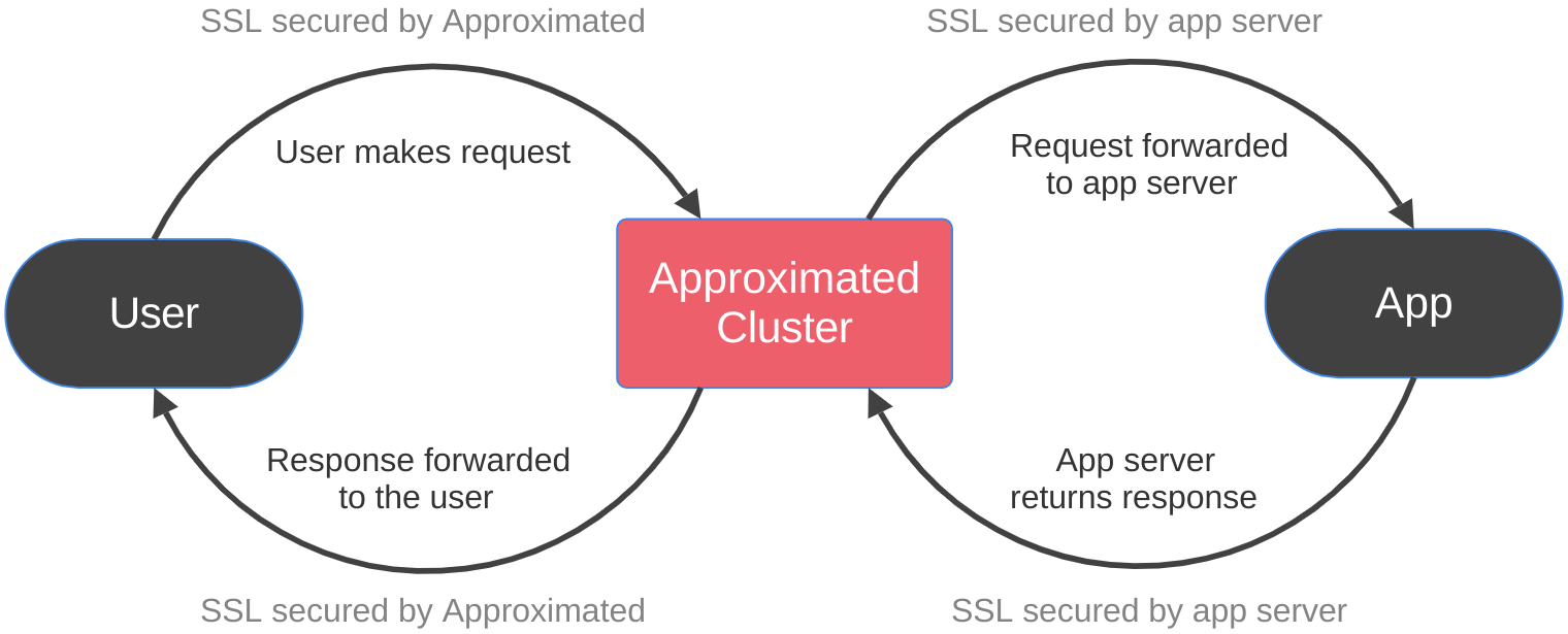 Approximated provides SSL encryption between the user and the cluster, but only your app or server can provide SSL encryption between the cluster and your app.